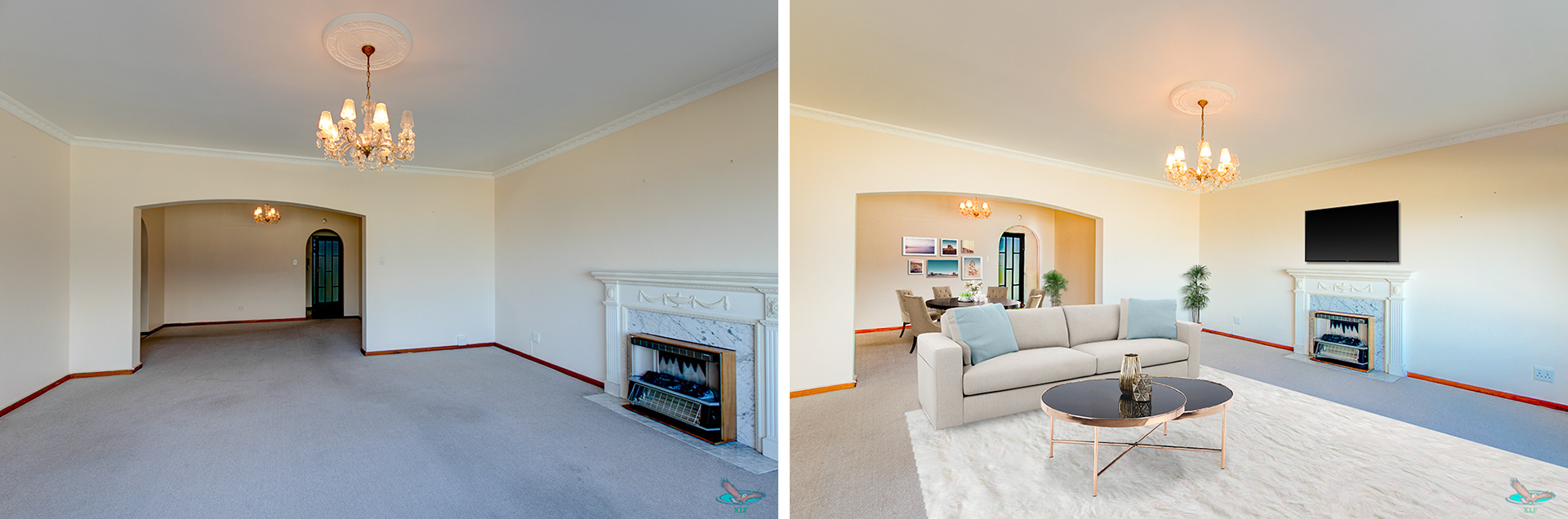 A vacant house is far more appealing to prospective buyers or tenants when portrayed with attractive furnishings. I can achieve this digitally, at a fraction of the cost of physical staging.
